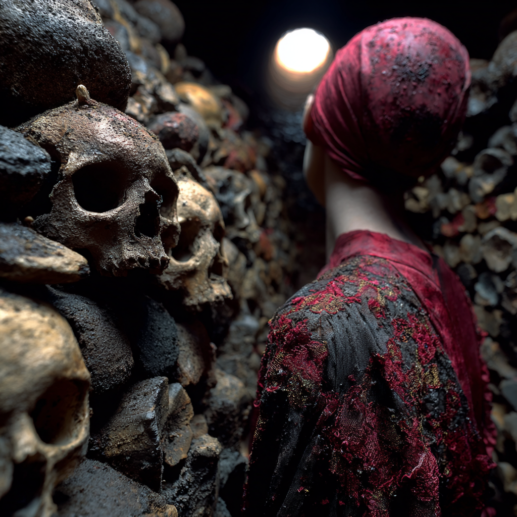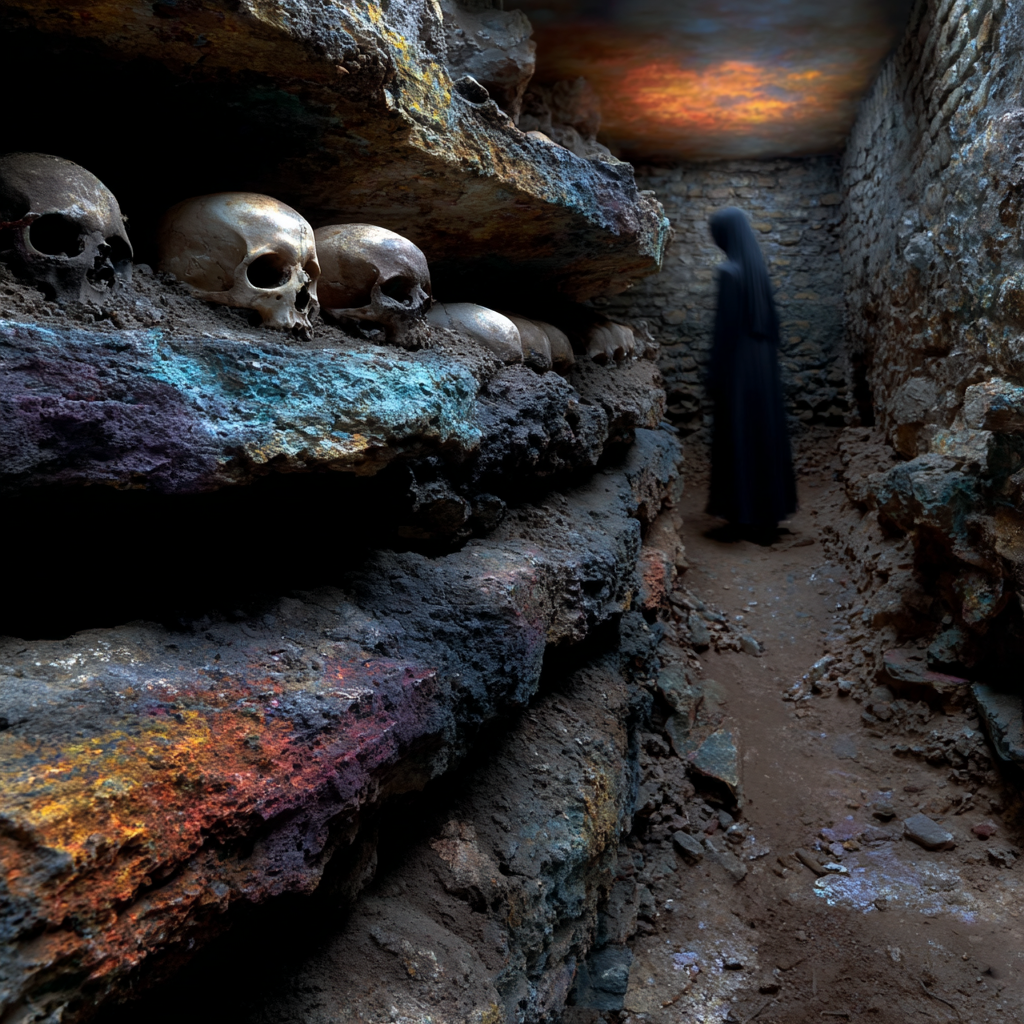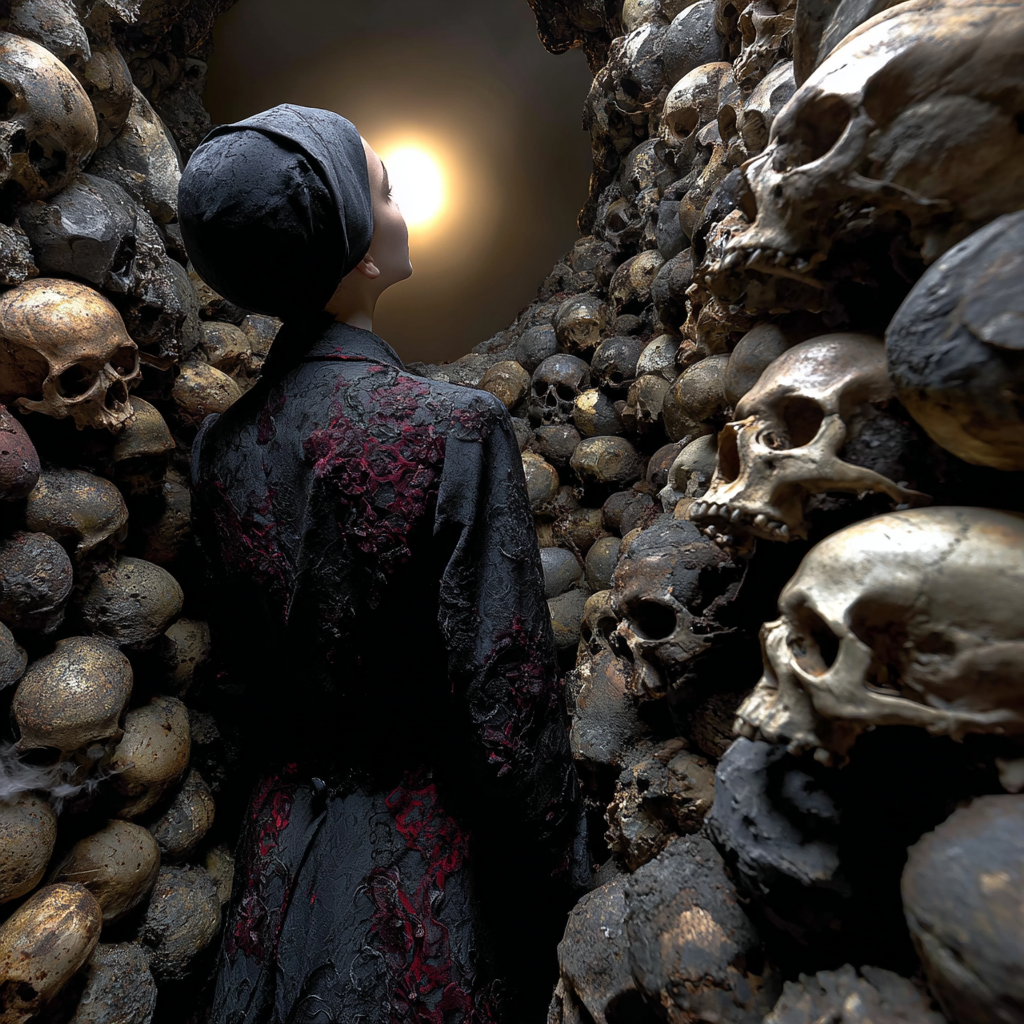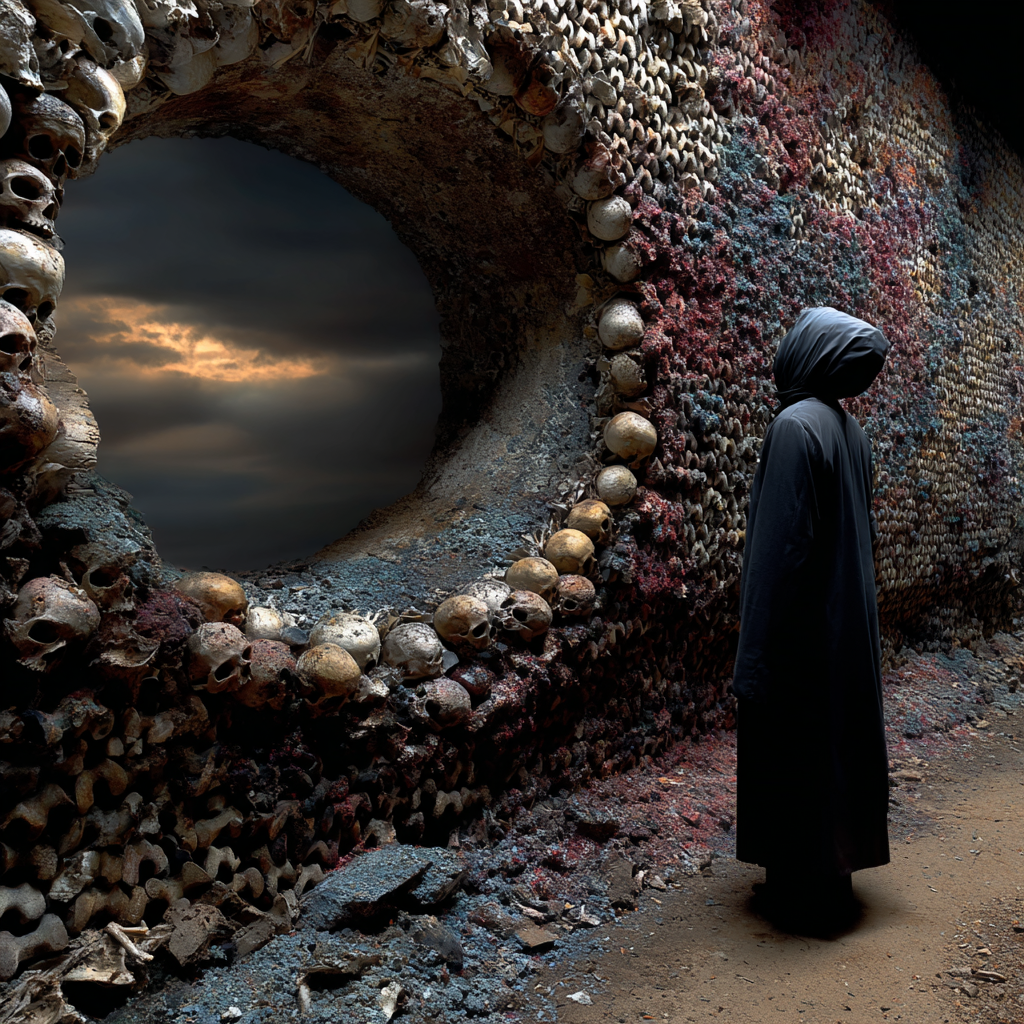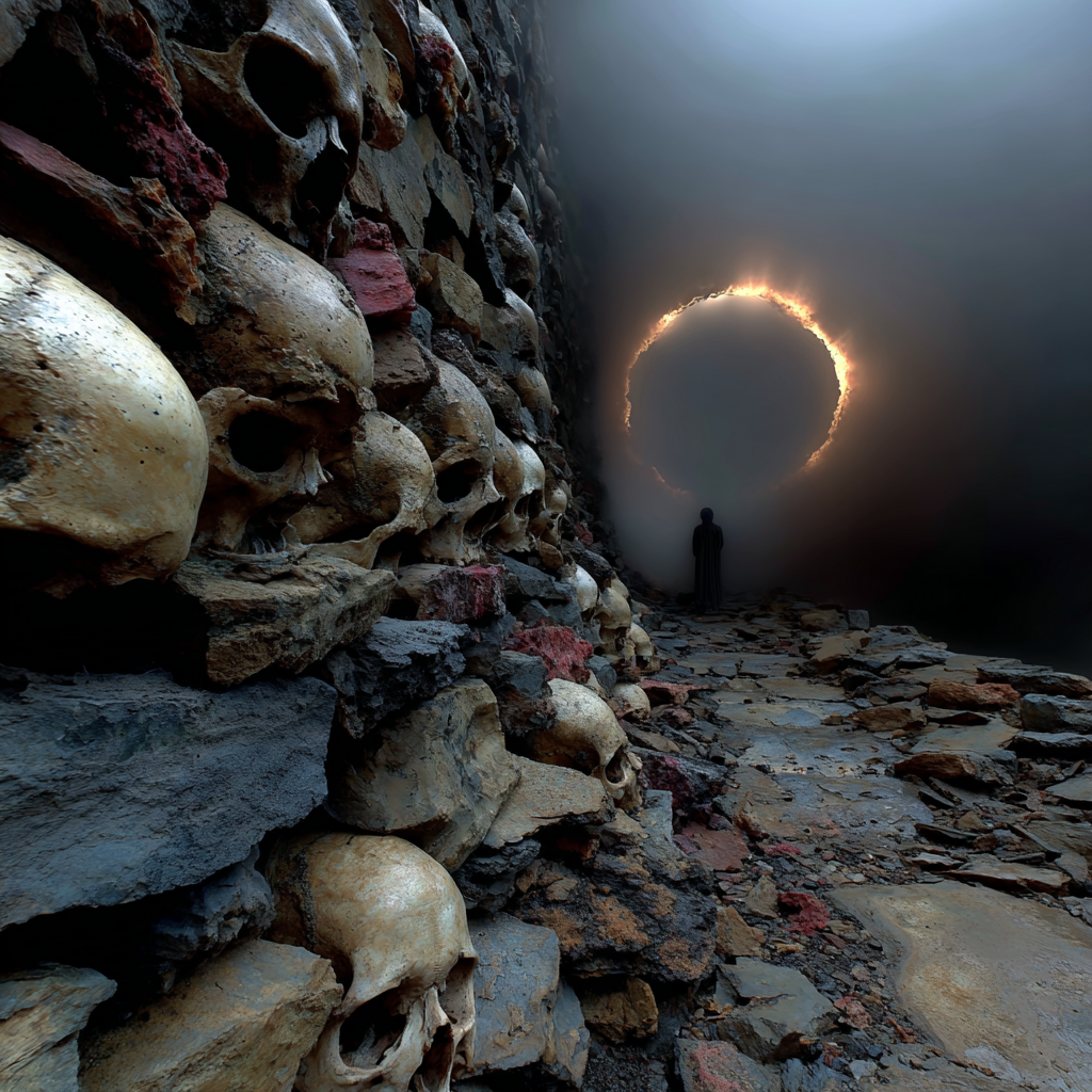 Skulls form walls like old masonry.