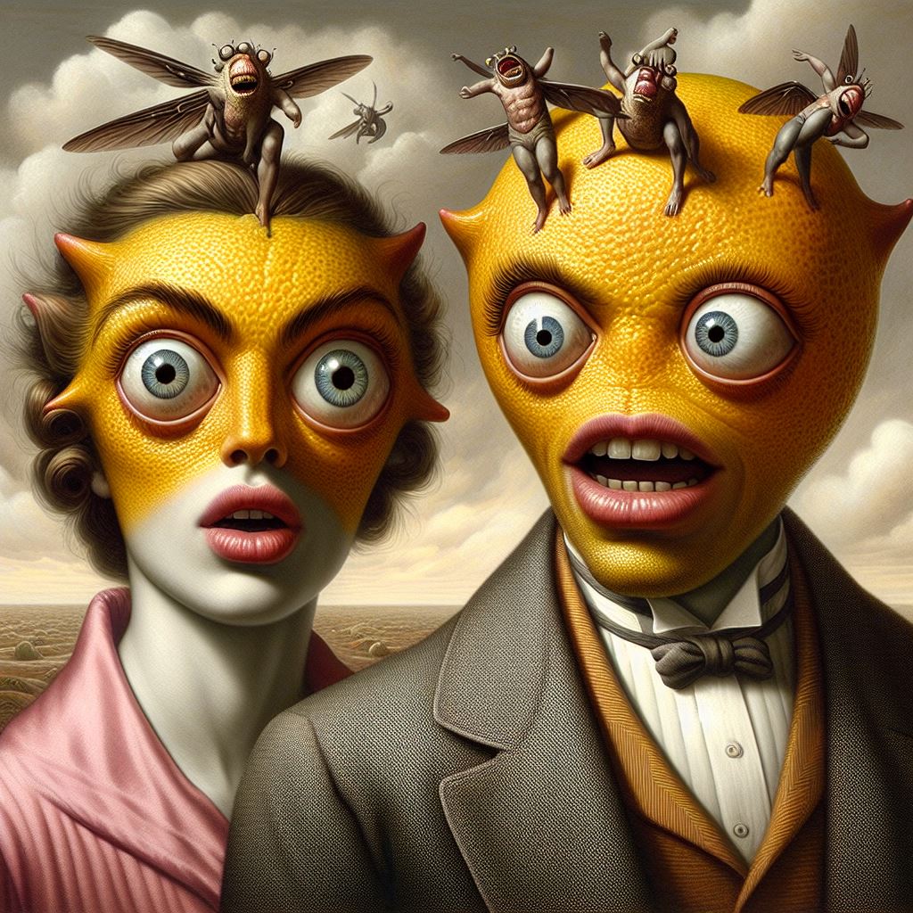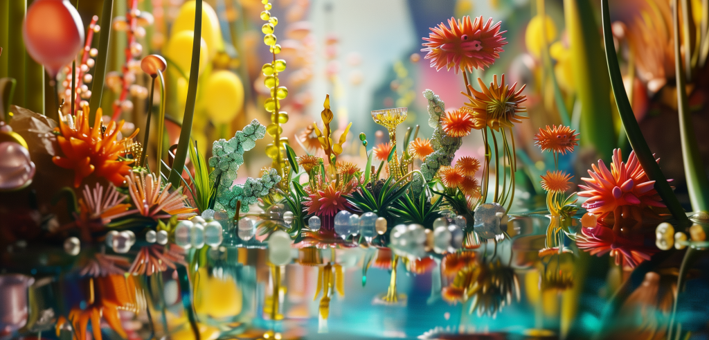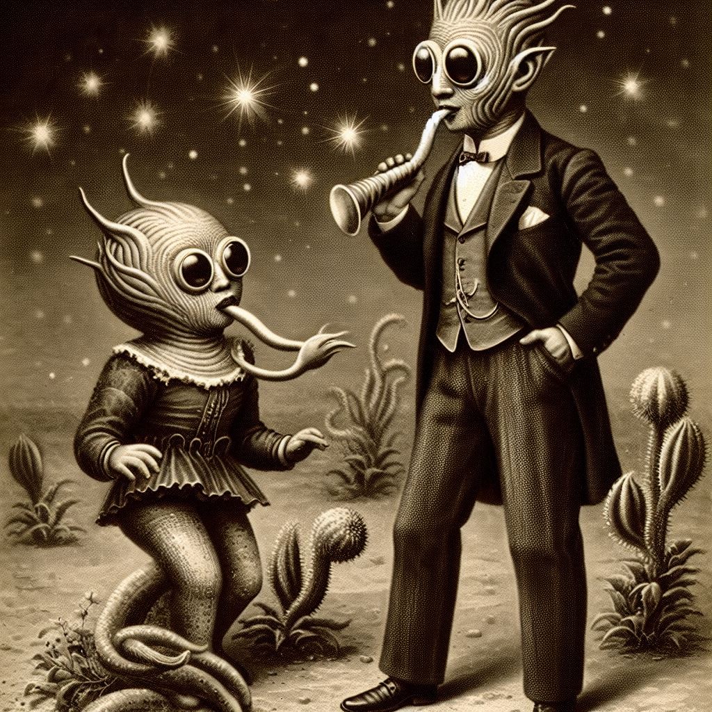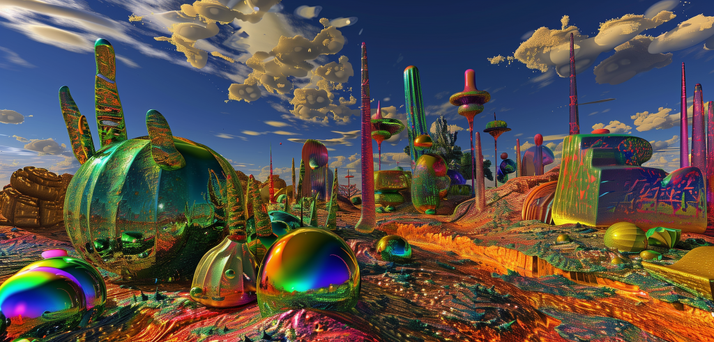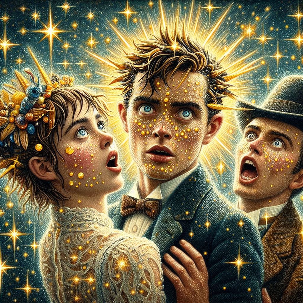 Creatures Underfoot dwell in the molten margins of reason — radiant, wriggling things that pulse with color theory and cosmic nonsense. They bloom from spores of sound, coil around vibrations, and whisper to your soles in a language made of shimmer. Beneath every reflective puddle, every rainbow-spit swamp, they gather in parliaments of paradox: some shaped like flowers that walk, others like thoughts that bite. Though microscopic in myth, they loom large in hallucination. Step lightly, dream brightly — the soil thinks back