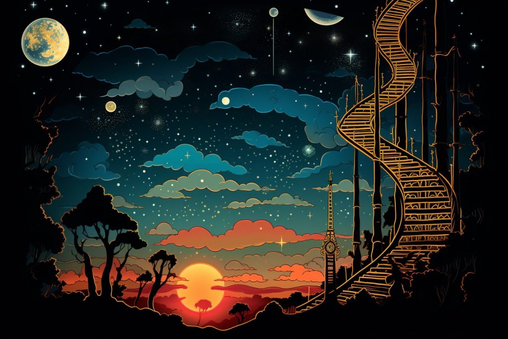 This was a good long rainy weekend of creativity. The idea, storyboarding and writing was a good even split 50/50 of the GPT 4 and myself. There is some deeper social messaging, which I feel keeps the exploration through the human psyche remarkable and interesting as one is moved along this guided tour.